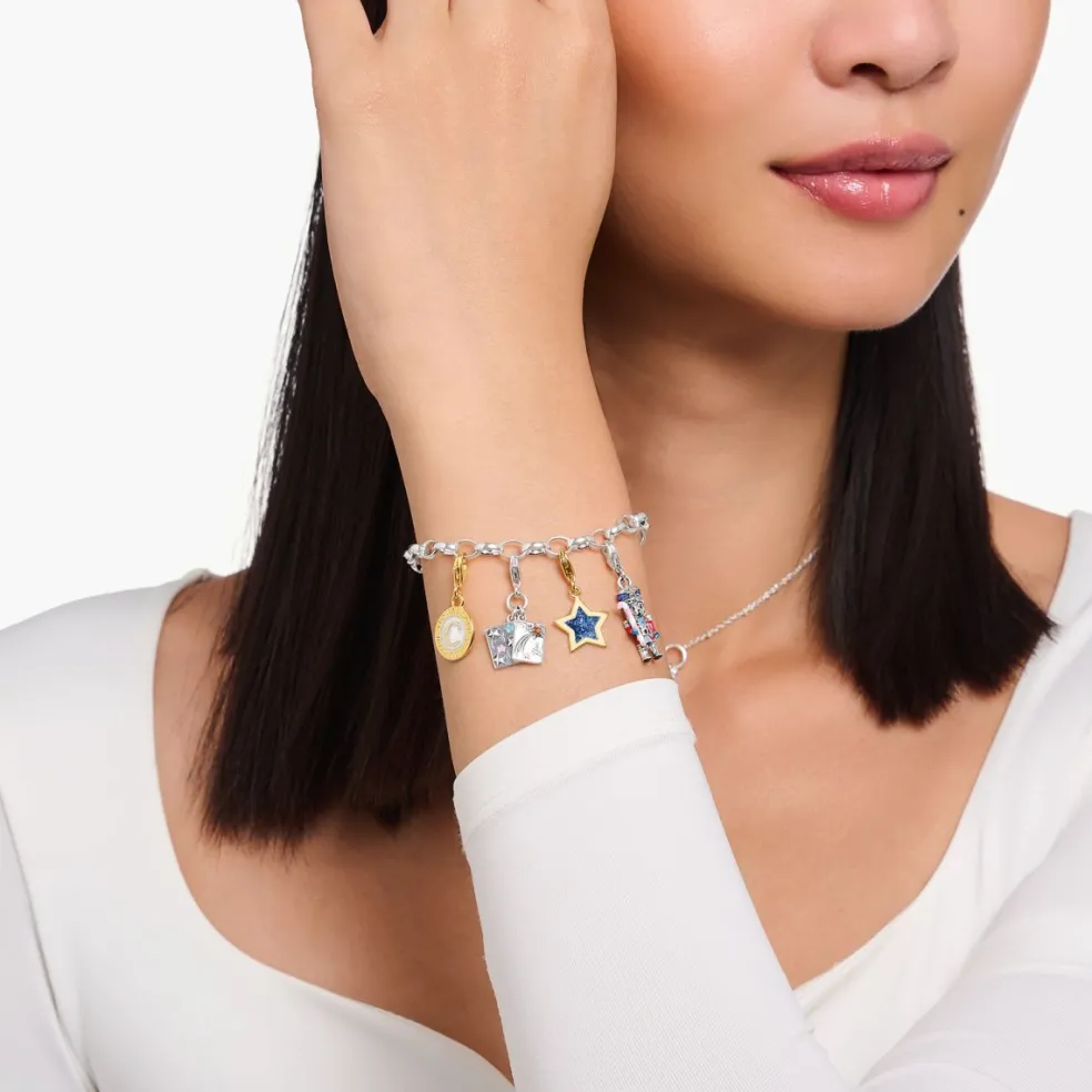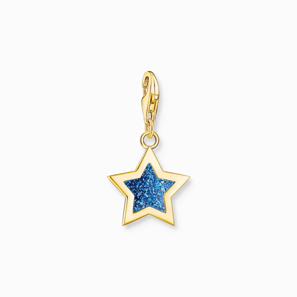 Berlock i form av en femuddig stjärna försedd med exklusiv 18 karats guldplätering och handmålad med skimrande kallemalj i mörkblått. Du kan kombinera stjärnan med andra berlocker på ett personligt sätt.