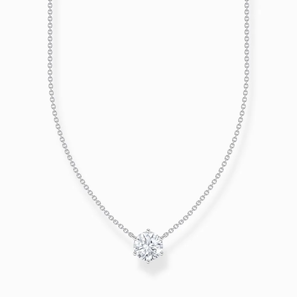 Den vita, rundslipade zirkoniastenen som pryder hänget är ett tidlöst blickfång. Den noggrant slipade stenen fångar ljuset på ett förtrollande sätt och ger halsbandet en gnistrande charm. Detta smycke är ett perfekt exempel på hur Thomas Sabo lyckas kombinera stilren enkelhet med lyxig finess, vilket gör det till ett oumbärligt tillskott i varje smyckessamling.