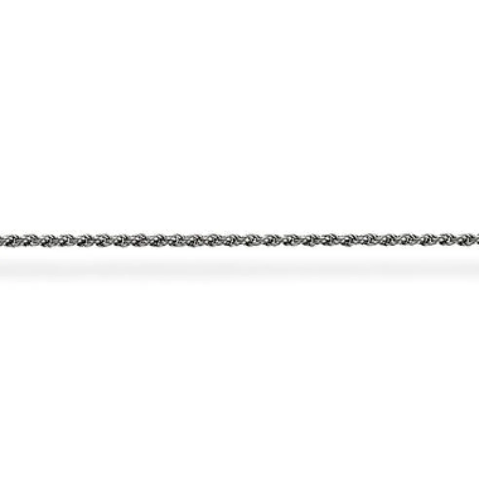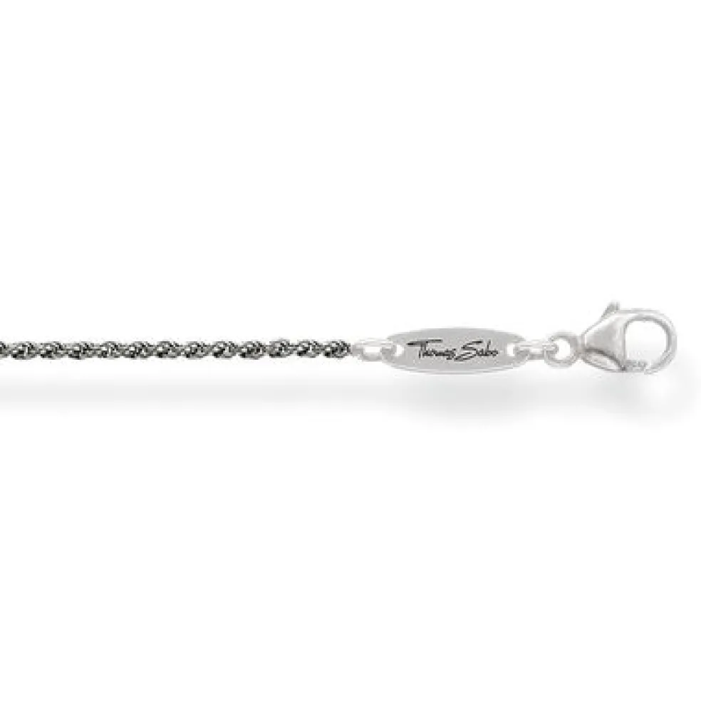 En halskedja i oxiderat sterlingsilver från Thomas Sabo. Kedjan är flätad och ser ut som ett flätat rep i utseéndet.