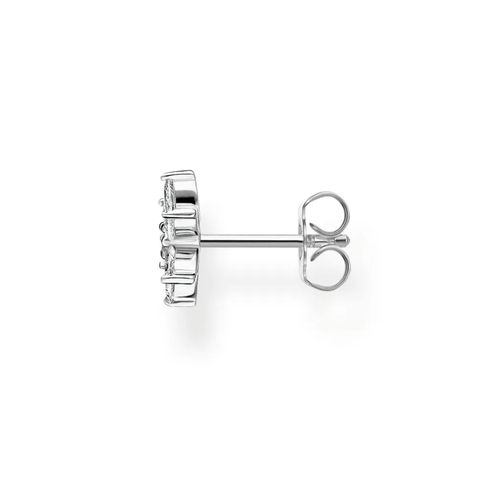 Detta fina singlestiftörhänge med en blomma är prytt med vita, gnistrande smyckesstenar. Kommer från Thomas Sabos serie Happy Moments och ses här i 925 Sterlingsilver.