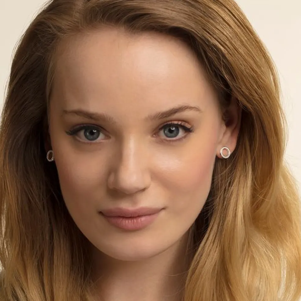Örhängen i minimalistisk grafisk design med en kristallklädd cirkel på från varumärket Thomas Sabo.