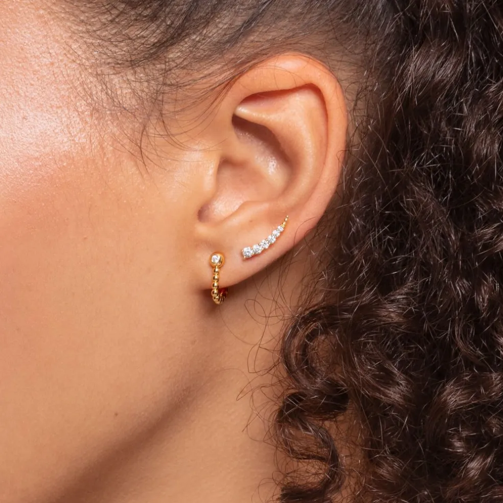Ett par så kallade "climbers" eller som vi säger i Sverige – Öronklättrare, här i 18 karats guldpläterat silver med klara zirkoniastenar.