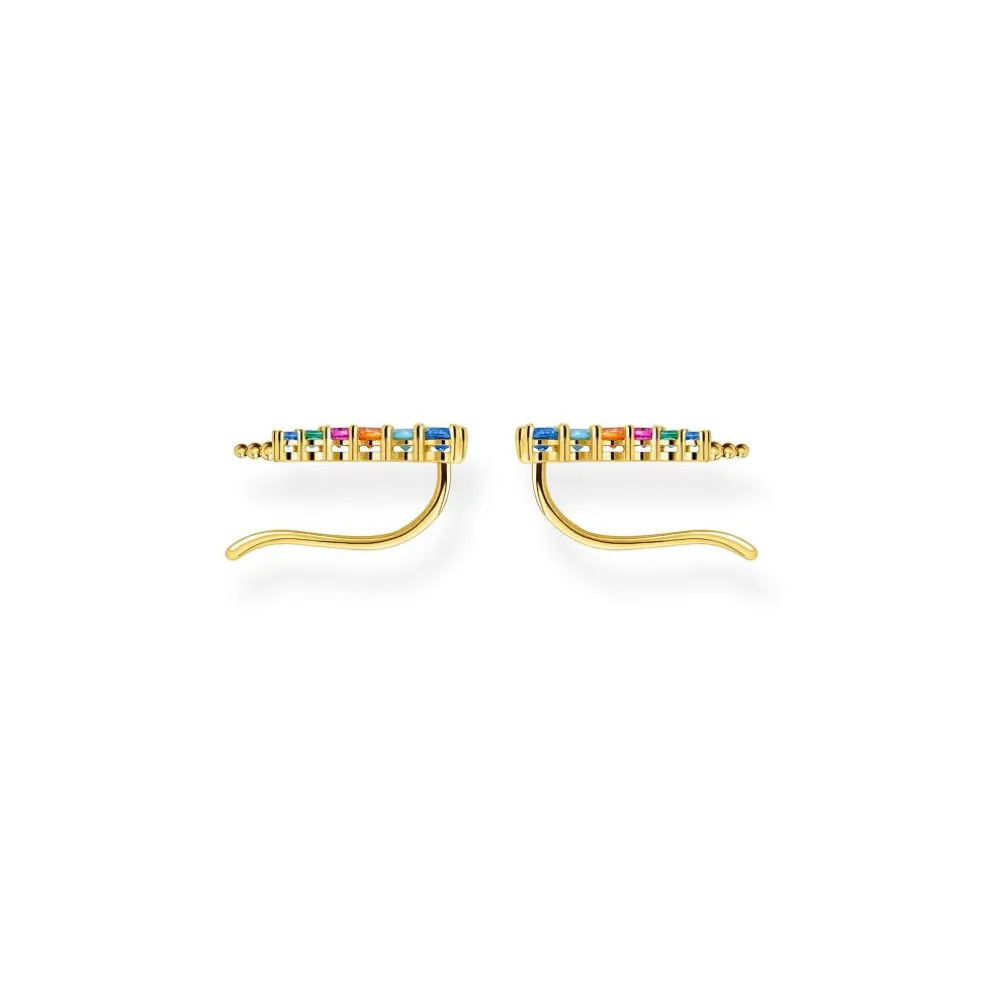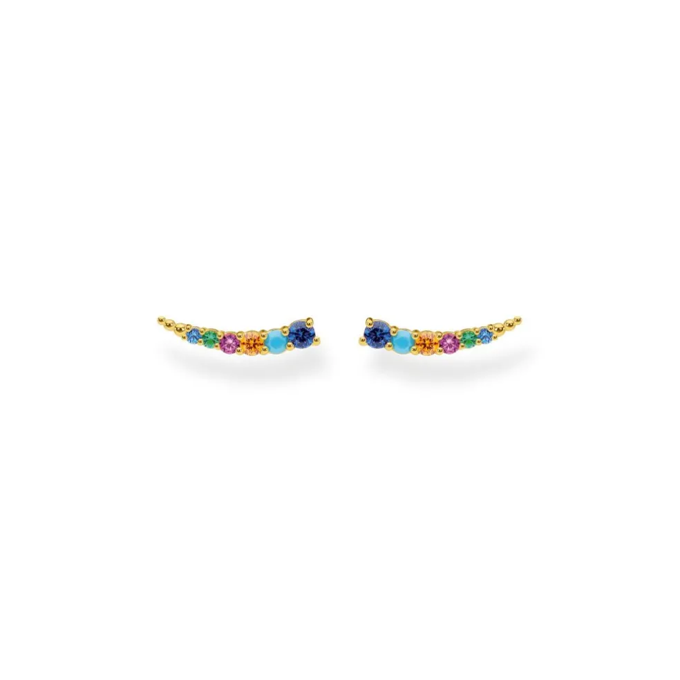 Ett par så kallade "climbers" eller som vi säger i Sverige – Öronklättrare, här i 18 karats guldpläterat silver med stenar i mixade färger.