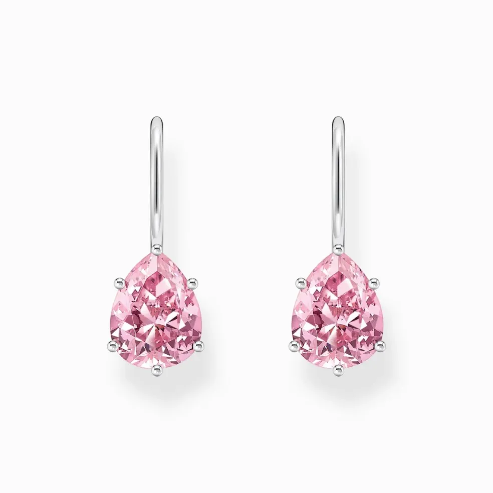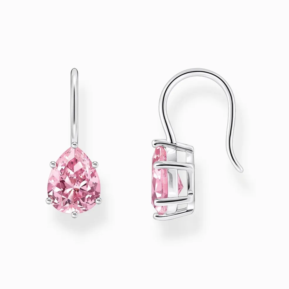 Ljusrosa örhängen på krok från Thomas Sabo, här med en droppformad kristall på.