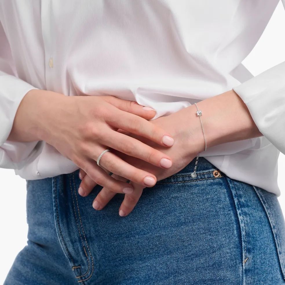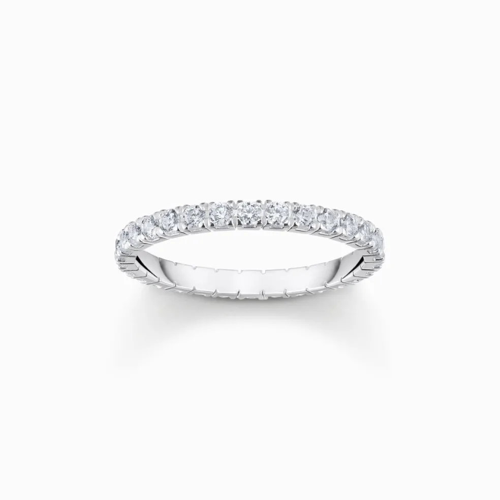 Denna delikata alliansring från Thomas Sabo är et tillverkad av återvunnet silver och omsorgsfullt infattad med små vita zirkoniastenar runt om hela skenan. Med sin fina och klassiska design är det ett mångsidigt smycke som passar för alla tillfällen och blir snabbt en oumbärlig del av din smyckesamling.