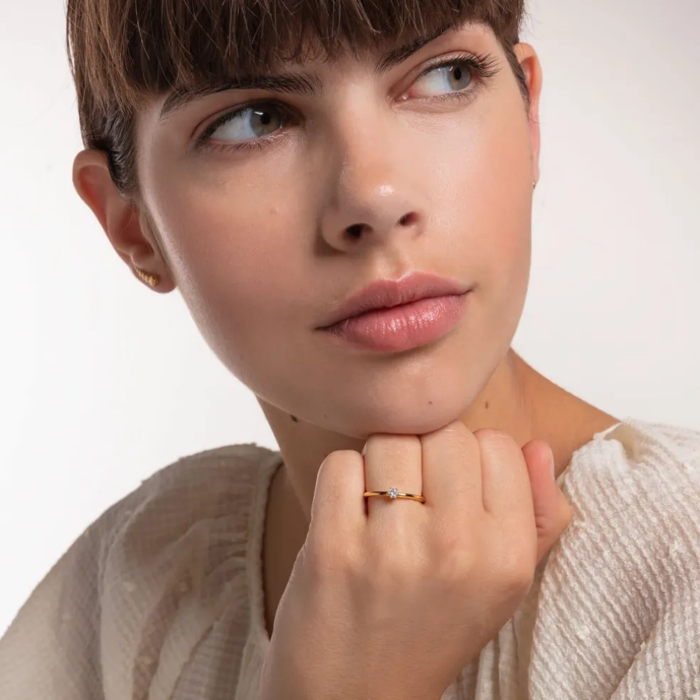 Tack vare den återhållsamma designen kan glansnumret i 18 karats guldpläterat sterlingsilver utan problem kombineras med andra ringar till en personlig mix & match-look.