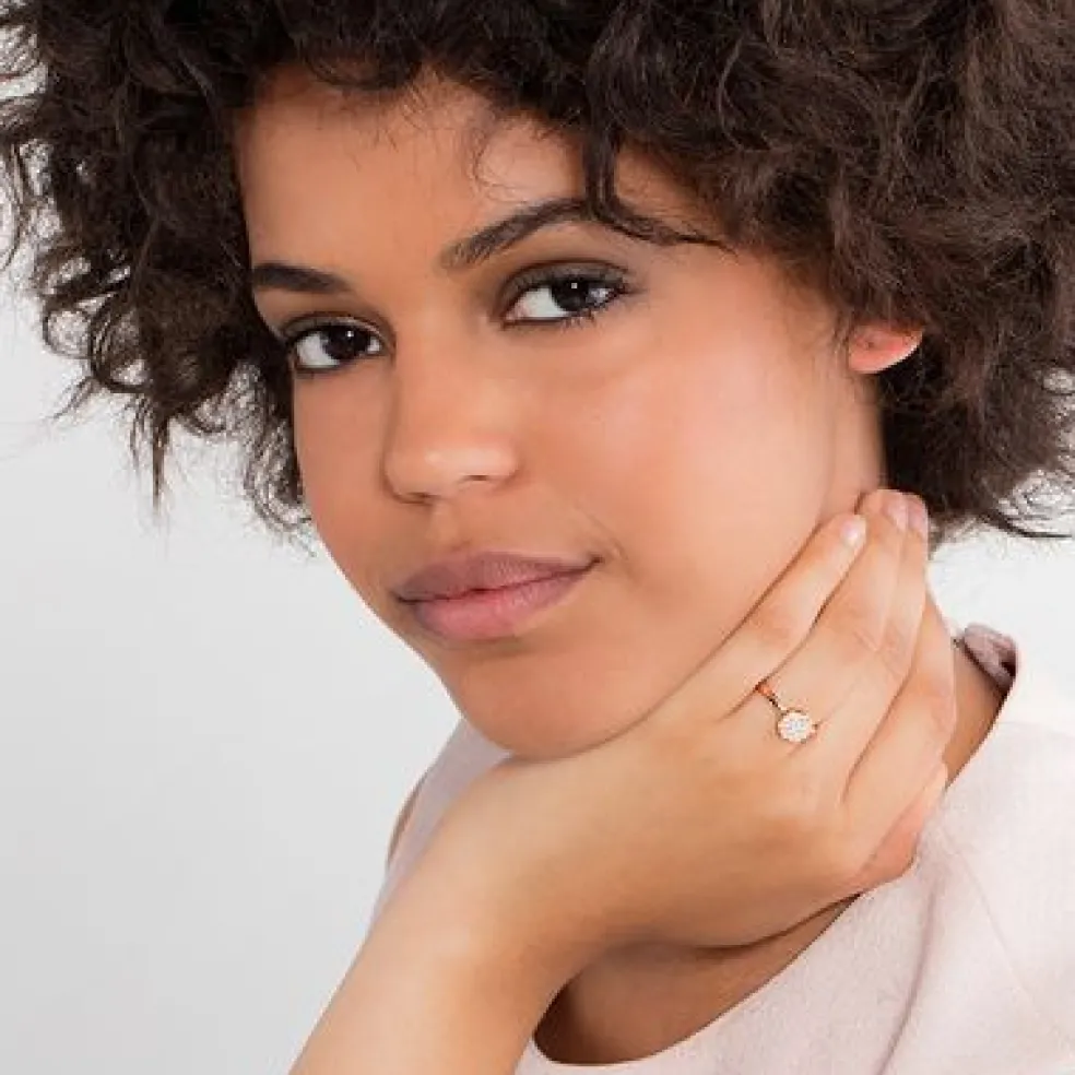 En ring med en liten cirkel som har glittrande stenar på sig från Thomas Sabo.