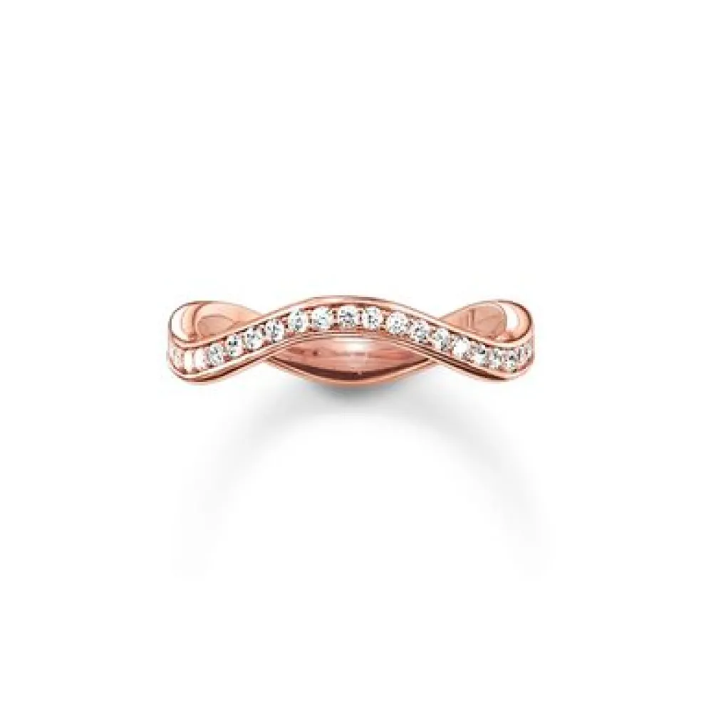 Vågformad ring i 18K roseguldpläterat silver från Thomas Sabo. Ringen är klädd med små kristaller.