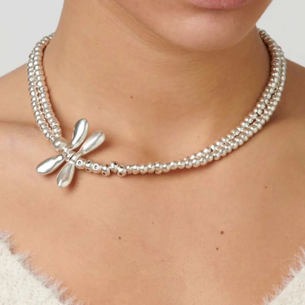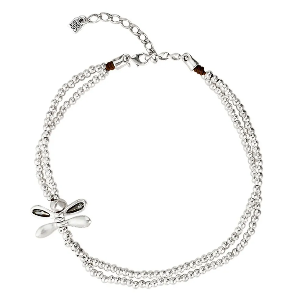 Vackert men ändå tufft. Little Dragon Fly är UNO de 50 halsbandet som du bär nära huden. Det passar mycket bra när du har en topp som lämnar plats för den fina trollsländan. Det glittrar till från det ena vingparet där det sitter klara kristaller. Det här är ett halsband som ger en känsla av fest och förväntan men som även kan bäras en vanlig vardag då livet är lite för grått. Ge bort halsbandet som en present till en person som älskar handgjorda silversmycken av högsta kvalitet. Se också till att du har ett Little Dragon Fly halsband att förgylla livet med!